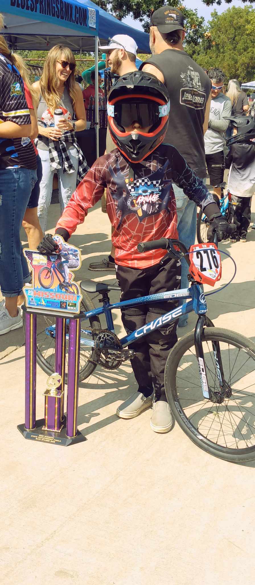 Being away from the team and BMX all summer was hard for Elijah though, especially coming off not only his 2022 State #1, but also his 2022 Grands #1, where he won the greatest race on Earth. The race where they award you a trophy that you literally can't haul home after you win it.